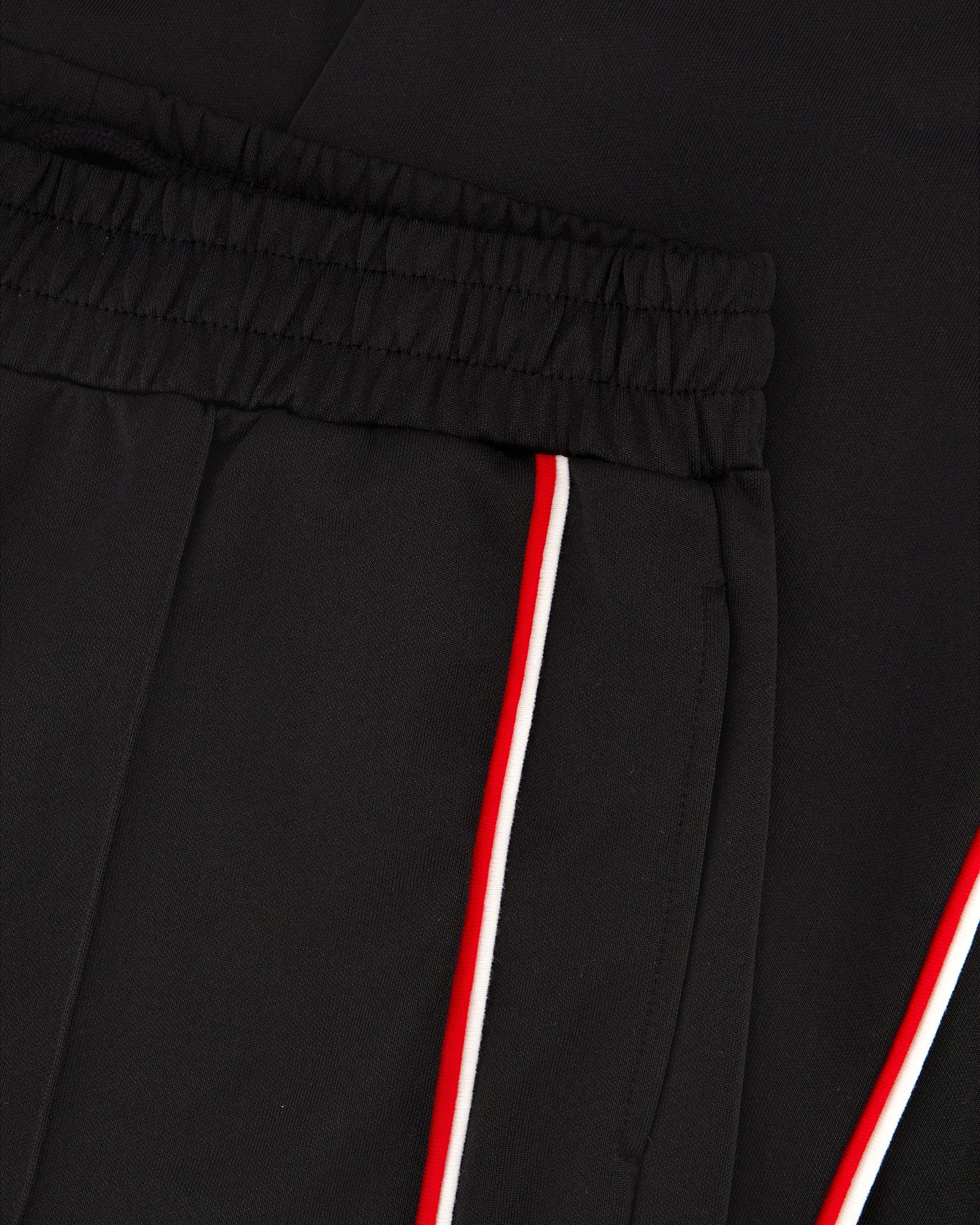 Sporty meets statement. Deze zwarte trackpants met rood-wit-roze zijstrepen heeft een relaxed fit en een elastische tailleband voor ultiem comfort. Gemaakt van een soepele polyester katoenmix – perfect voor on-the-go of off-duty days. Afgewerkt met het Stieglitz x Núnoo logo op het bovenbeen.
