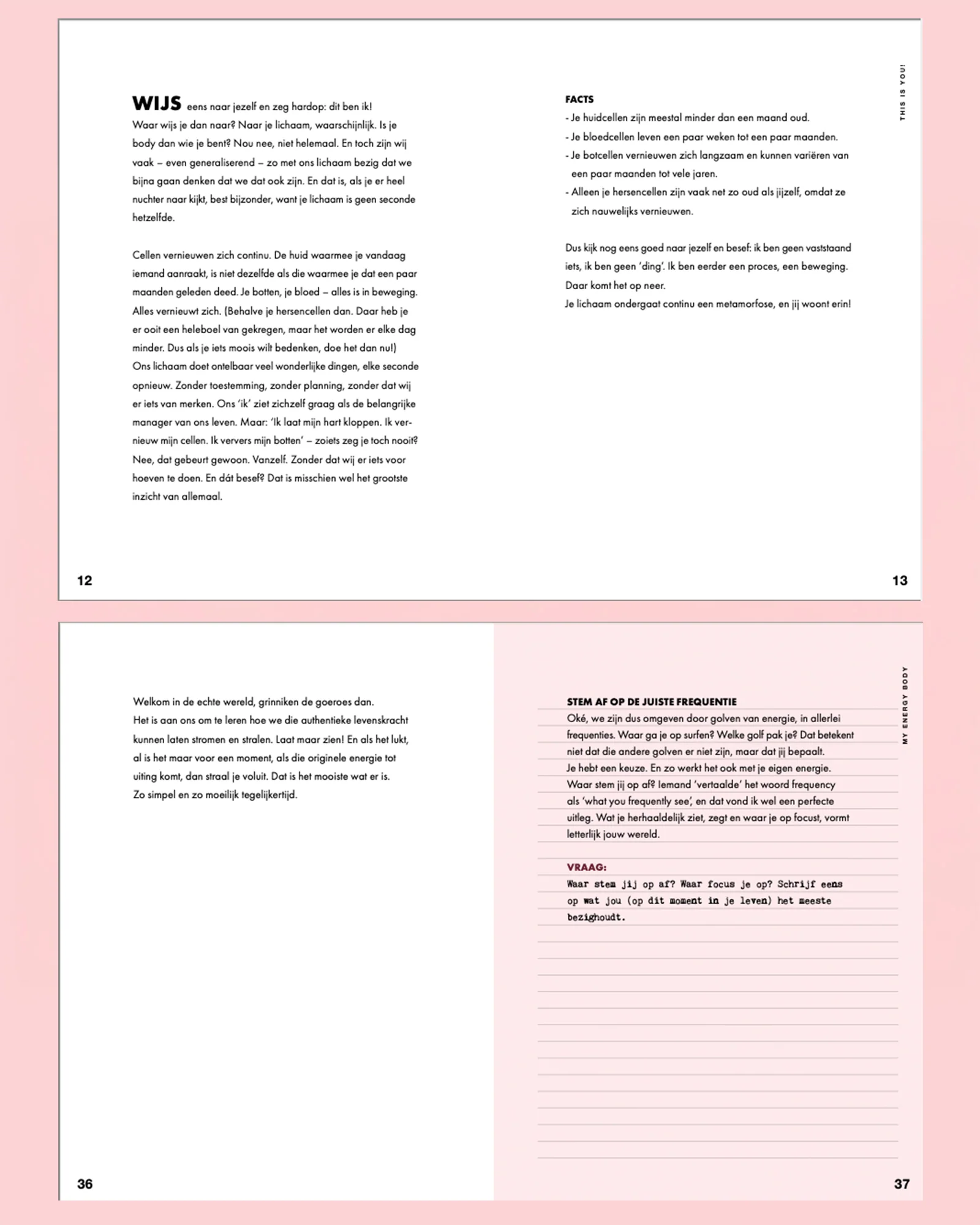 Pien Stieglitz sloeg de handen ineen met haar moeder Inez van Oord – founder van het mindstyle magazine Happinez, zij maakte twintig jaar geleden spiritualiteit toegankelijk voor een breed publiek. Het resultaat? Een krachtig, compact boekje over energie, over focus én aantrekkingskracht. Met veel vragen en veel ruimte om te schrijven. Met leuke discussies tussen moeder en dochter over the magic word: energie! Daar kun je nooit genoeg van krijgen. Het is workbook en journal in 1.